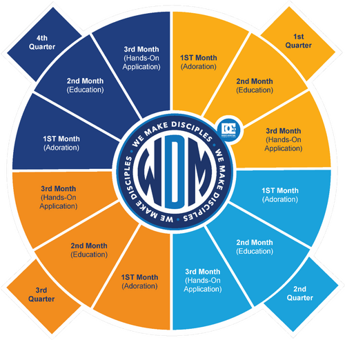 1. Adoration (January, April, July, October): Your community connects with God through Worship through services, prayer, and other fellowships.